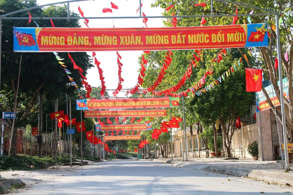 Đường quê trang trí mừng Đảng – Mừng Xuân. Ảnh TNP